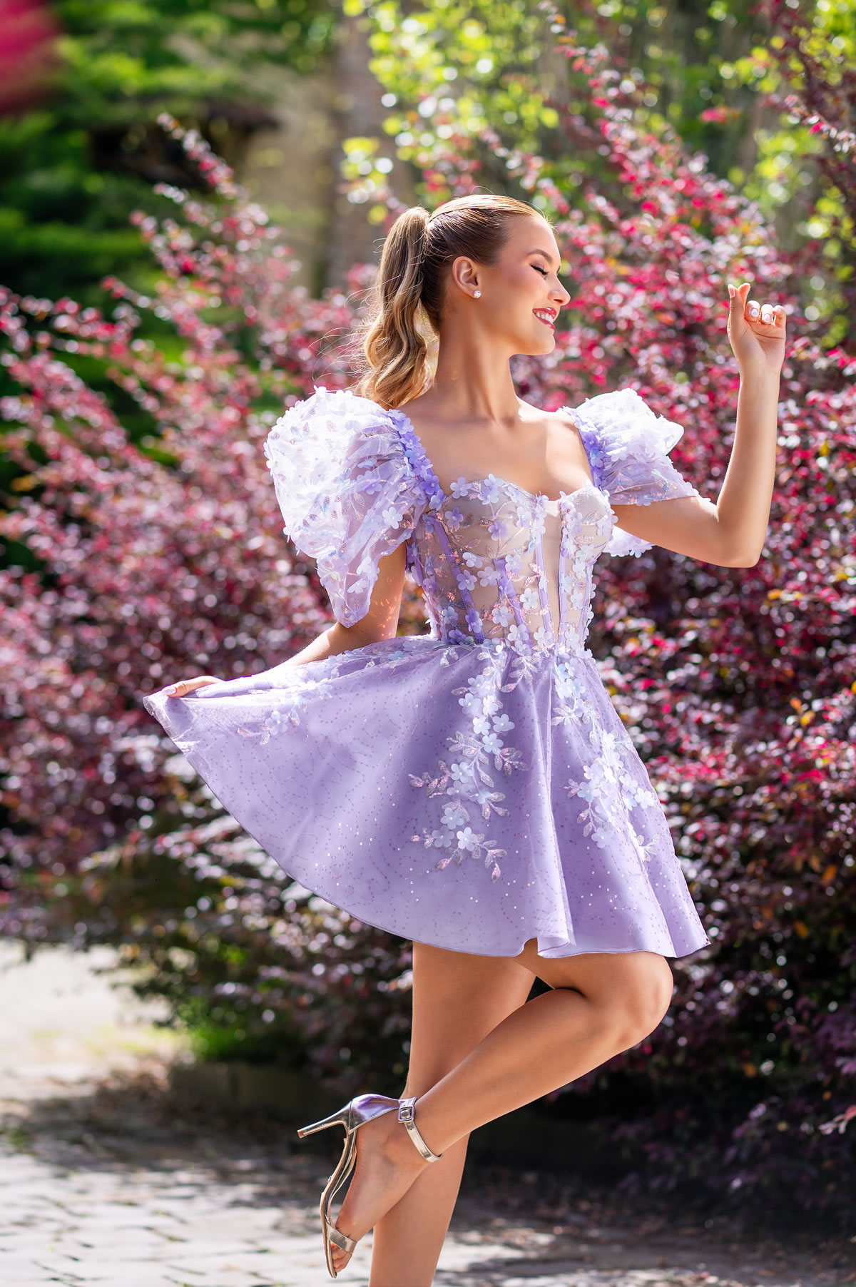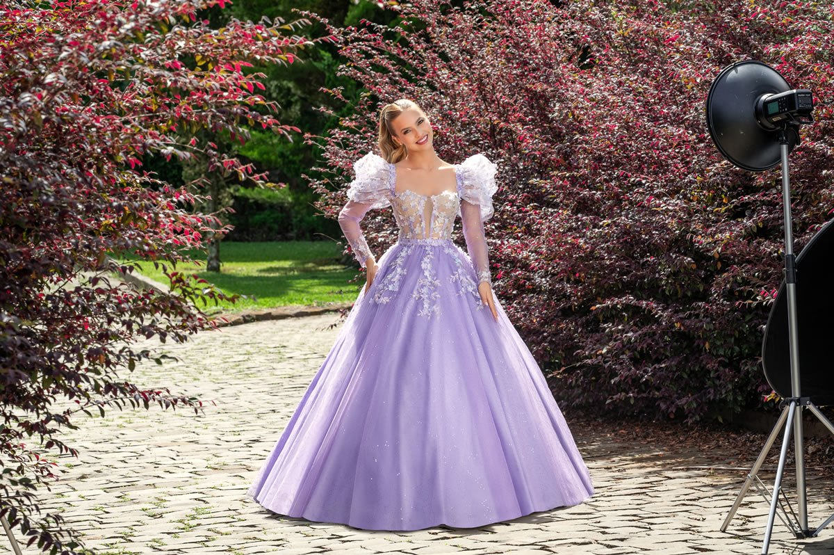 VESTIDO CORSELET LILAS COM MANGAS REMOVÍVEIS E SAIA LONGA